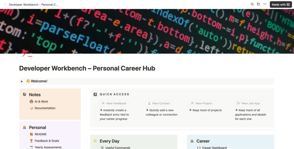 Developer Workbench β A Notion Career Dashboard for Developers